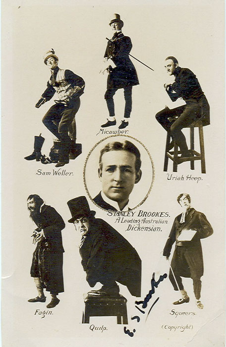 In 1921 Sir Henry Fielding Dickens, K.C., the famous English barrister and then the only surviving son of Charles Dickens, wrote saying that the photos of Dickens characters made by Stan were among the best he had seen. These were presented to Sir Henry by W. A. Callaway, Under Secretary of Victoria and president of the Melbourne Dickens Fellowship.