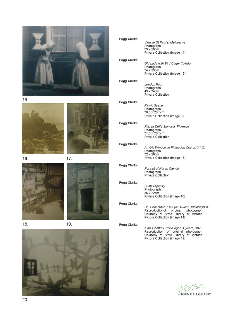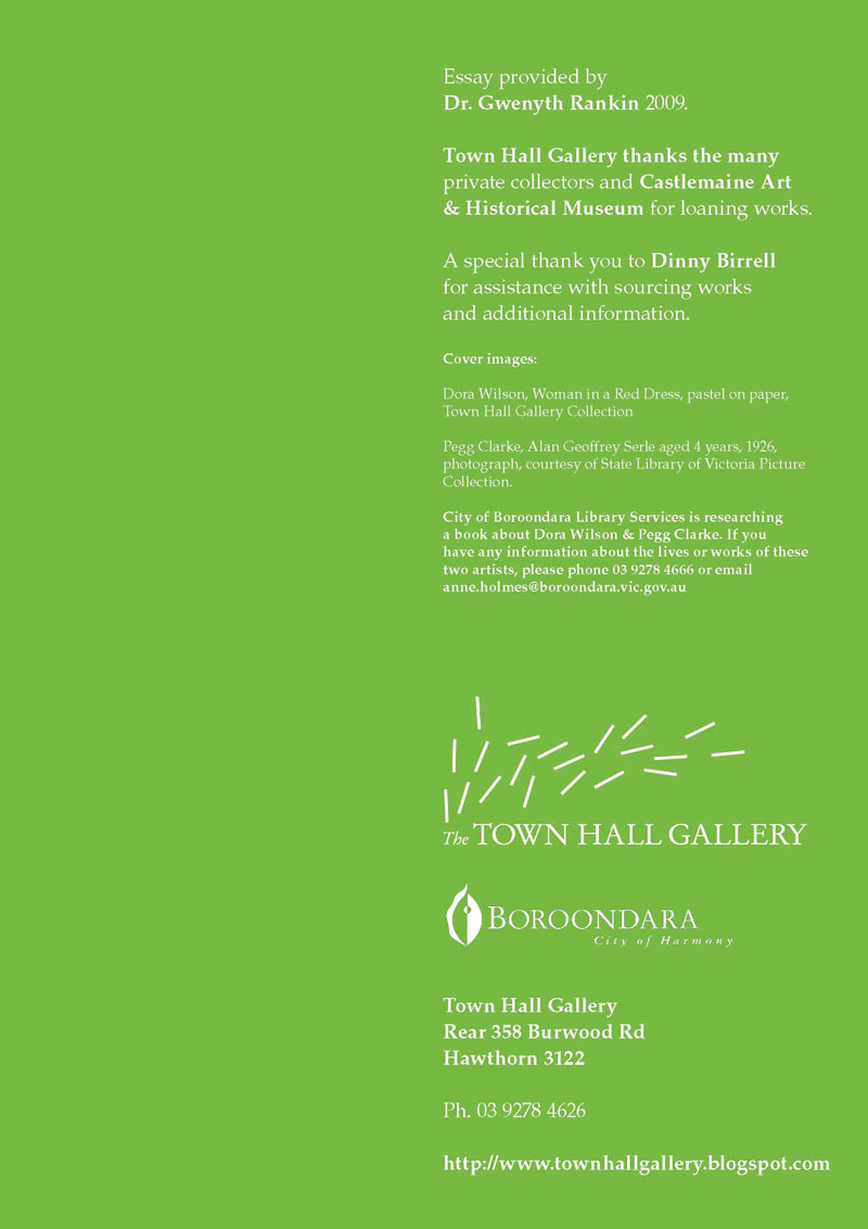 Works have been sourced from the Town Hall Gallery Collection as well as numerous private and public gallery collections. Town Hall Gallery thanks the generosity of the many private collectors for loaning these works for public viewing. A small publication will be available to purchase during the exhibition.