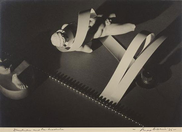 Dupain chose this image for the one man show that the Photographic Society of New South Wales gave him in March 1937 the caption in The DailyTelegraph of 10 March noting that ‘It depicts the destruction of classical life by the remote control of the machine. Both works came just a year after Dupain wrote a review for The Home magazine in 1934 on American critic James Thrall Scoby’s monograph on the photography of Man Ray.