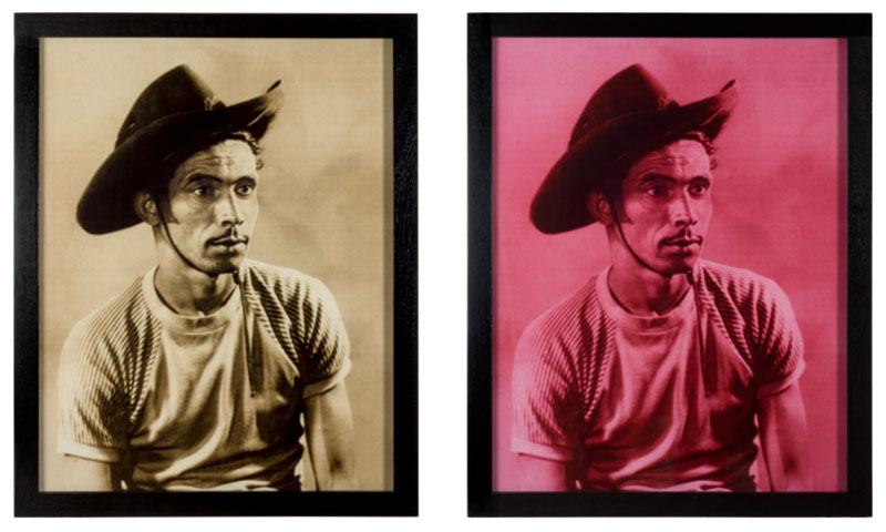 Stepping back the Beauty images have a place in the long history of Aboriginal performers willing and coerced for the camera. The works swell in and out with ripples of evoked sound, associated images, colour and content. Jack Moffatt performs and directs his own image which expresses aspiration and a richness to his sense of self, his niece casts him in an enigmatic production of her own making. Behind each layer are the hundreds of past and present images defining and also liberating and expressing Aboriginal people