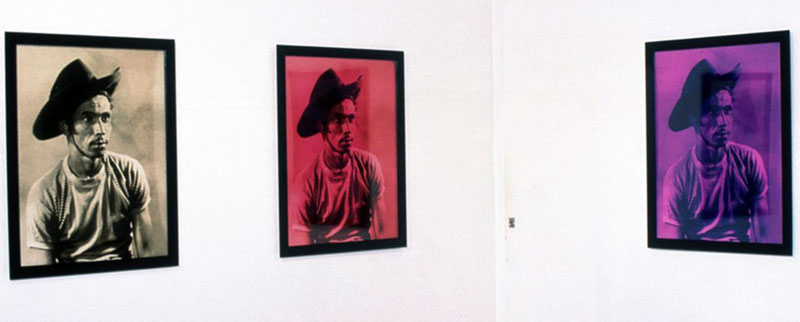 The titles of all Moffatt’s works are echo chambers evoking popular TV and film narratives, stereotypes and soundtracks. In the case of the Beauties perhaps we hear the country and western twang of Summer wine the 1960s hit song by Nancy Sinatra and Lee Hazelwood. But also there is the familiar fashion parade mantra of ‘now we see so and so in burgundy chiffon’. There could also be that refrain from Paul Simon’s Kodachrome. ‘I think images are worth repeating’.