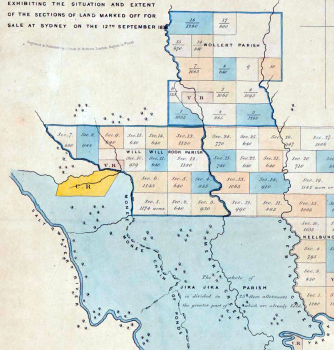 | Map of part of the colony of Port Phillip : exhibiting the situation and extent of the sections of land marked off for sale at Sydney on the 12th September 1838 / engraved & published by J. Cross. Collection National Library of Australia |