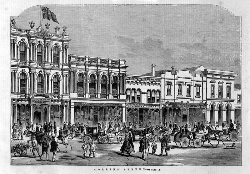 | 1864: Collins Street wood engraving |