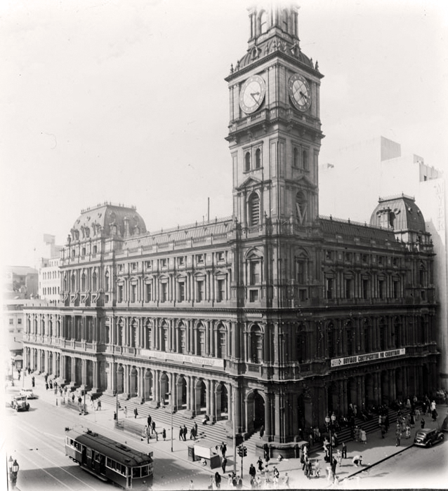 | The General Post Office Melbourne, looking from the corner of Bourke and Elizabeth Streets |