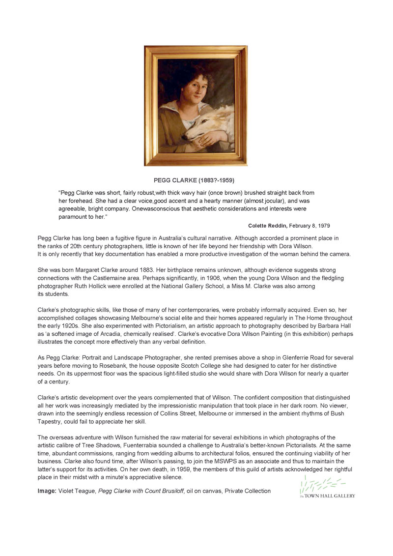 Together Again brings these two important artists - Dora Wilson and Pegg Clarke - back together in Hawthorn and delves into their fascinating artistic careers. Wilson and Clarke worked out of a shared studio on Glenferrie Road, Hawthorn, during the 1920s and 30s, and travelled together to Europe in the late 1920s - painting and photographing images that they saw.