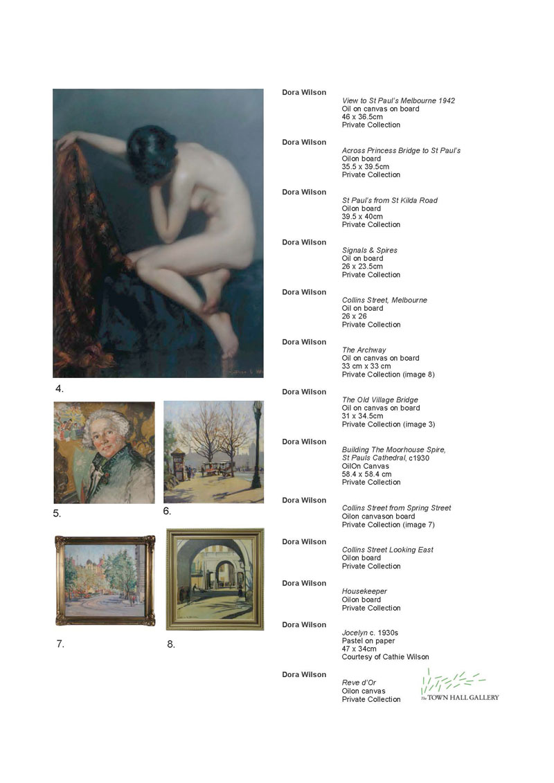 Wilson was schooled at Methodist Ladies’ College before studying at the National Gallery schools under the watchful eyes of Bernard Hall and Frederick McCubbin. Working primarily in painting and pastels, her subject matter varied from landscape to portraiture and nudes. In 1923, she contributed to the Exhibition of Australian Art in London and the popular magazine of the time, Woman's World, reproduced on its cover her painting 'Reve d'Or'.