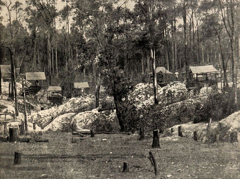 | Early gold-mining, Gympie; a specimen of Daintree's geological photographs |