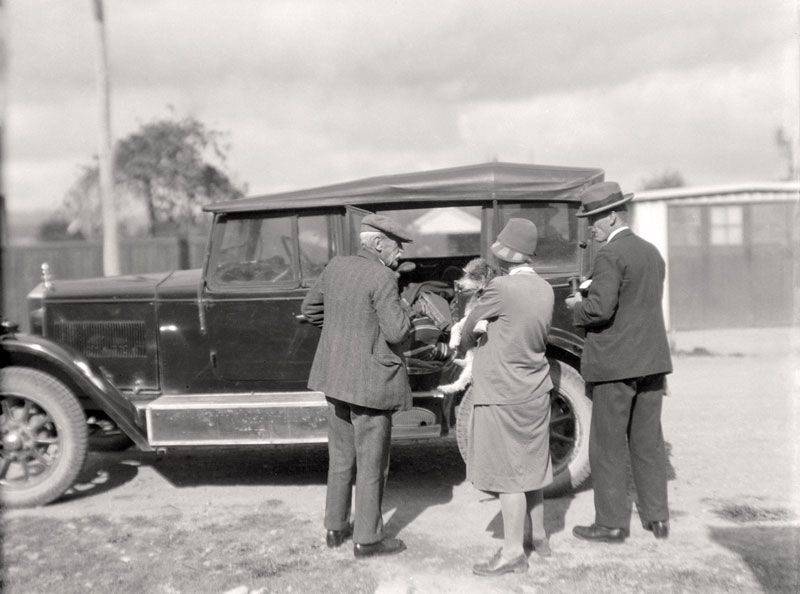 | Woman, dog and car. Most likely Dorothy Izard. |