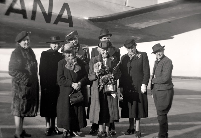 Woman with flowers with friends: is that Dorothy Izard far right and Ruth Hollick second left?