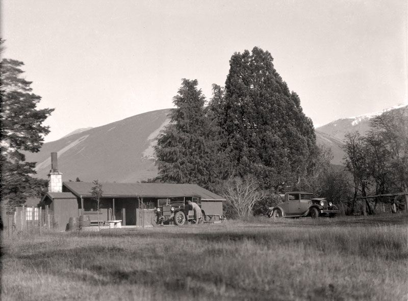 | People and cars possibly late 1920s. Most likely Ruth Hollick on one of her many driving tours into the country. |