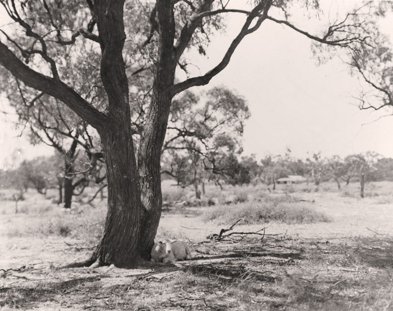 #05 Dorothy Izard, lone sheep under tree, Upper Marray River