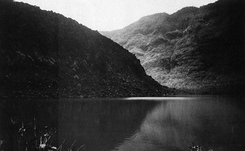 | #050: The mountain garden of Tjipodas, of which this pond with swans is a component, also belongs to the National Plant Gardens. The jungle on the slopes of Gedè and Pangrango – behind the lake – are natural monuments. |